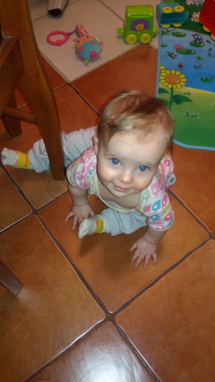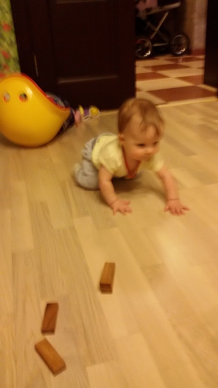 Умелки набирают обороты, еще до нг научилась сидеть сама (в 6,5 месяцев), сразу долго и виртуозно, ползание на четвереньках тоже освоила(за несколько дней до 7), сейчас уже нормально ползает по всей квартире, совершено не боится, как было у Киры, та сначала долго и с опаской выглядывала в коридор. Зато Ева ленится, иногда ползти за кем-то не хочет, предпочитает поныть, чтоб к ней прибежали)))
