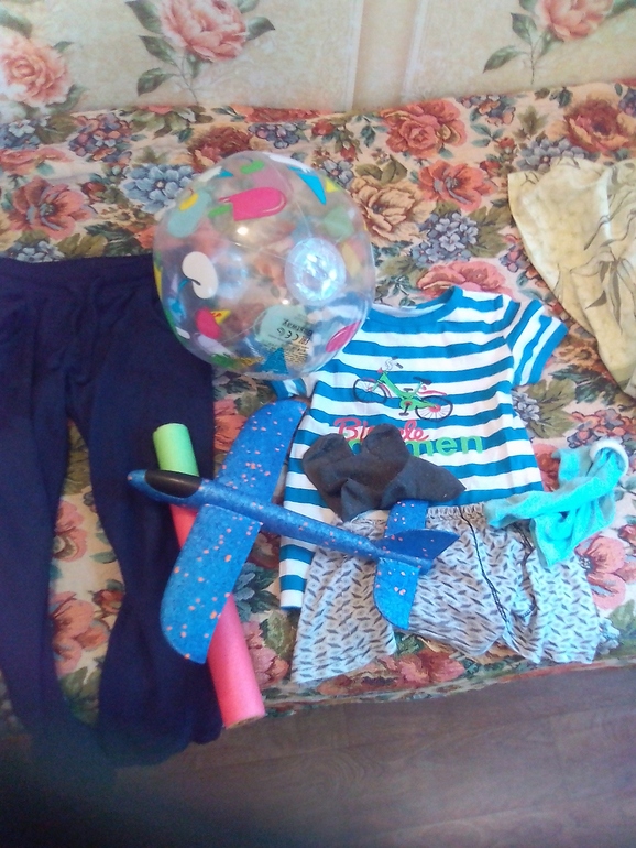 Отдаю взрослое и детское . Забирать г.Анапа ул Пушкина д. 1. Это санаторий Русь. Забирать строго 10 сентября с 16 до 19. Потом мы улетаем дрмой,все просто выкину. Предпочтение тому кто заберёт все вместе. 1)отдаю детские вещи на мальчика размер 122-128.все бу,футболка новая.на штанах есть дырочка. Так же самолётик из пенопласта ,брызгалка и мячик для воды(мы надули,уже уезжать а он не сдувается),ещё к этому книжки с детскими заданиями.