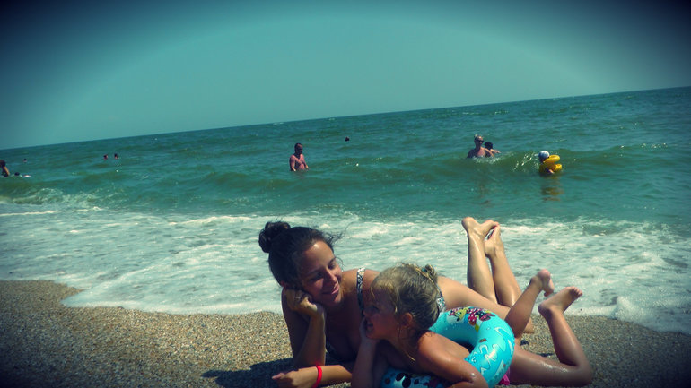 Море штормило почти все дни. Оно то прикольно попрыгать на волнах, но не с Раей. Приходилось на берегу купаться) А волны были сильные, с ног сбивали.