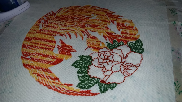 Вышивала год с перерывами ! ! ушло 7 мотков секционной нитки. немного зелёного и на цветок оранжевый и люрекс. Помогите оформить ? какого цвета рамку? и паспорту ? и надо ли его вообще ?