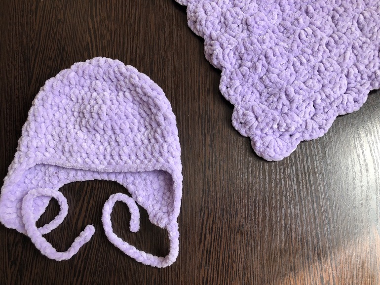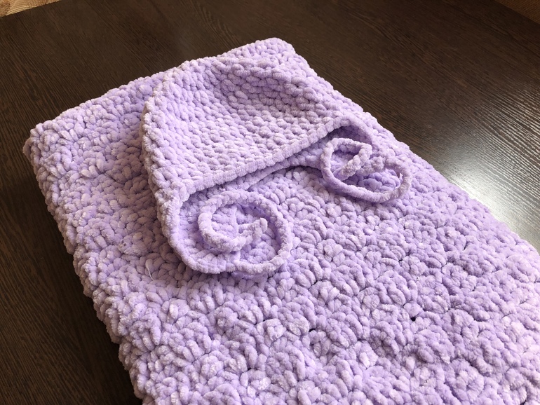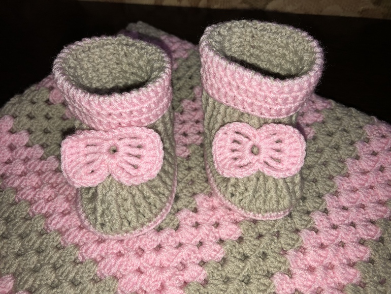 Шапочка и пинетки 0-3 мес. Плед 90*90 . Связано вручную. Новый.