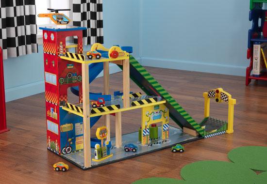 Эта динамичная игрушка создана для детей, которых сложно увлечь однообразными треками для машинок, им нужно что-то особенное! Вот он - супертрек для настоящих чемпионов от компании KidKraft, здесь есть отвесный скат, по которому машинки летают со скоростью света, винтовая дорога, лифт, гараж, автомойка, бензоколонка и даже вертолетная площадка. Ребенок не успеет соскучиться в таком разнообразии игр, собранных в одном комплекте. Все элементы выполнены как миниатюрные копии настоящих - щетки на автомойке двигаются, лифт перемещается с этажа на этаж одним движением руки, а светофор на треке будто отсчитывает секунды до старта.