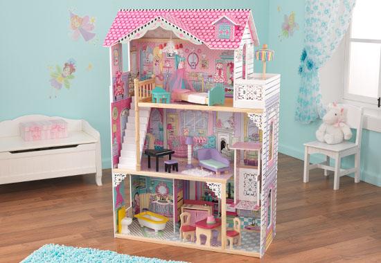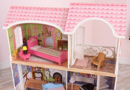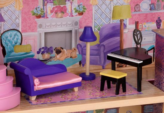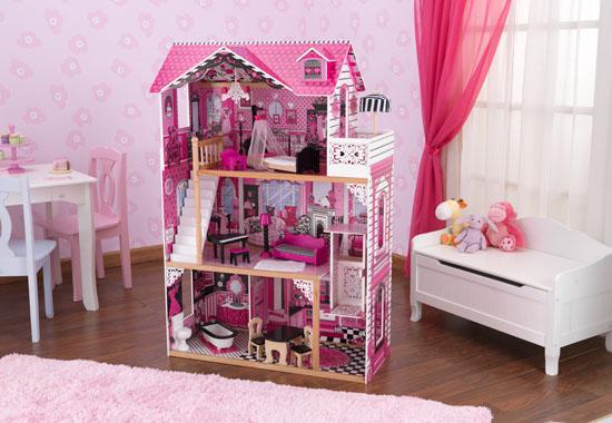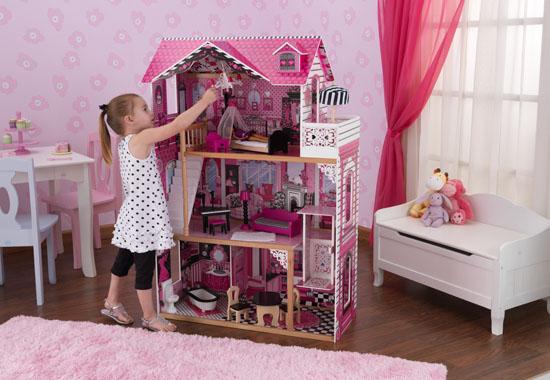 В четырехлетнем возрасте девочки начинают интересоваться куклами, и весьма остро встает вопрос организации пространства: где будут жить игрушки? Кукольный домик, выполненный в розово-фиолетовых тонах, настоящая мечта каждой маленькой королевны. С его помощью она может создать целую сказку с участием своих любимых персонажей, ведь в этом особняке есть все, что может пригодиться для жизни. Дом состоит из трех этажей и вмещает в себя целых пять комнат, а также просторную открытую террасу с коктейльным столиком. Внутреннее убранство поражает своим разнообразием и реалистичностью: здесь все, как у взрослых. В гостиной камин и мягкий диван, на кухне миниатюрная бытовая техника, в кабинете полка с книгами, в спальне мягкая кровать и большое зеркало. Все, о чем малышка могла только мечтать, ждет ее и ее кукол в этом необыкновенном игрушечном дворце.