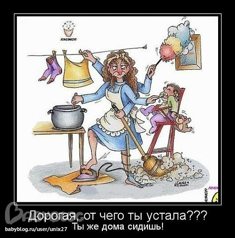 И работу по дому или с ребенком и работой то не считают, особенно многие мужья или бессемейные работающие женщины. Часто это даже вызывает презрение, ибо домохозяйка вроде как человек "низшего сорта", бездельница и прочее.