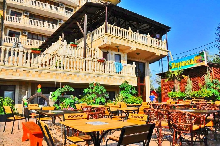 Современный отель Марракеш Gold в Анапе для семейного отдыха! Он расположен в 3 минутах ходьбы от песчаного пляжа ! Широкий песчаный пляж с дюнами и теплое неглубокое море - это то, что нужно Вам и Вашим детям.