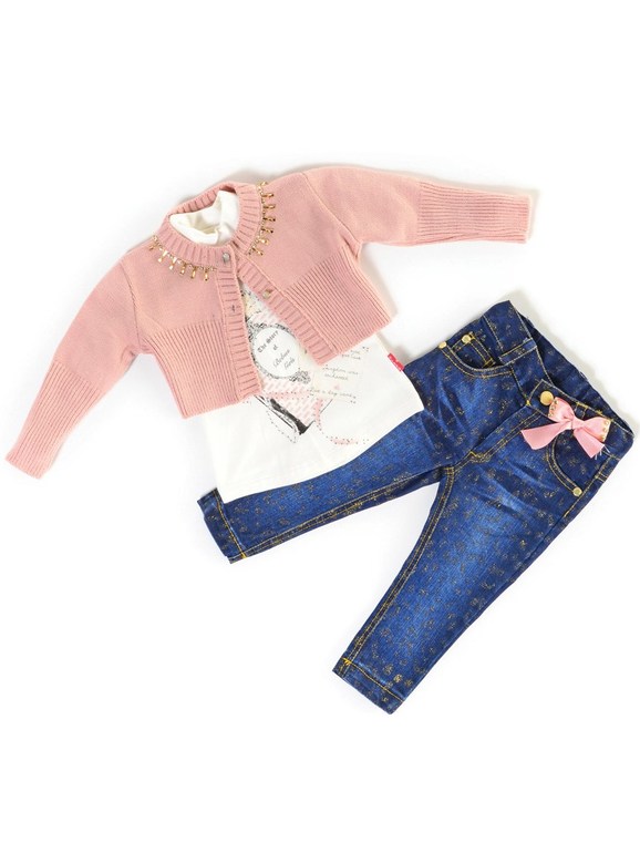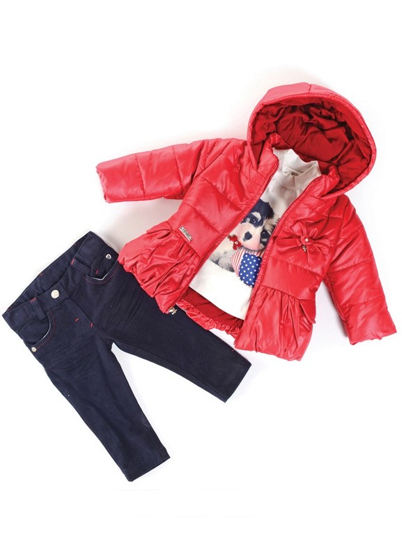 Описание: комплект для девочки 3 предмета, в комплекте куртка, кофта с длинным рукавом и брюки.