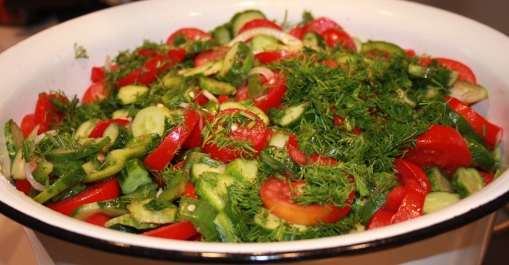 Огород со всеми его дарами был в полном нашем распоряжении. И не нет, наверное, смысла говорить, что каждый день у нас был салат из огурчиков-помидорчиков-зелени: