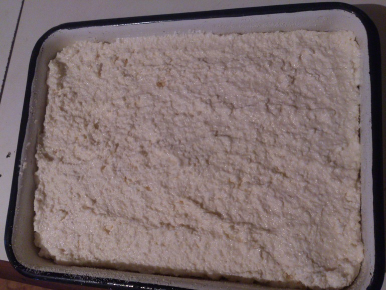 Выложить в форму, смазанную маслом и посыпанную манкой: