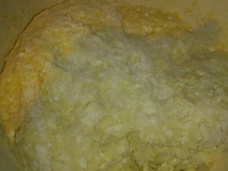 Раскатать пласт толщиной в пол сантиметра, нарезать кружки: