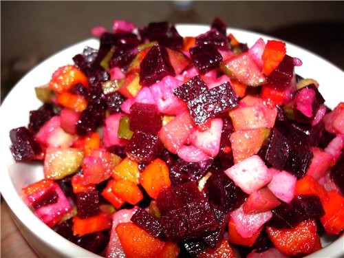 Очень вкусная свекла в этом году. Делали мы и винегрет: