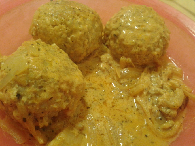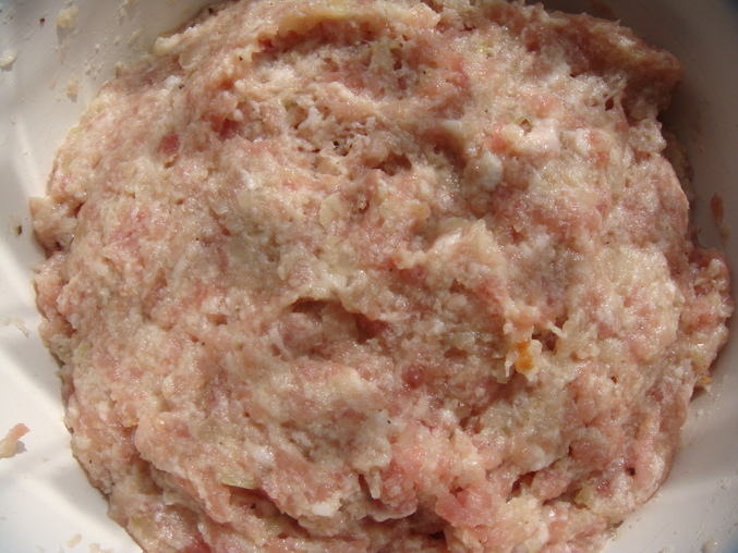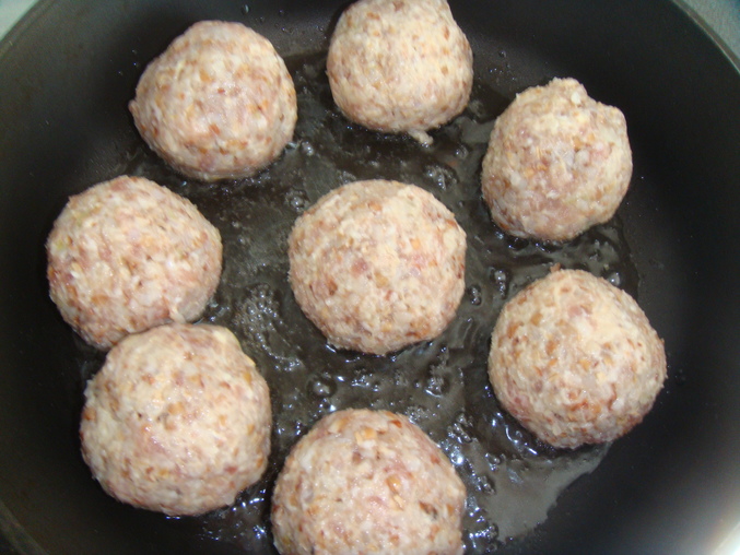 Получается очень липкий фарш, из которого мокрыми руками надо слепить тефтели: