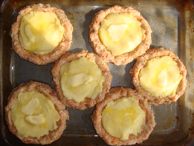 Положить картофельную начинку и тонкий кусочек масла сверху: