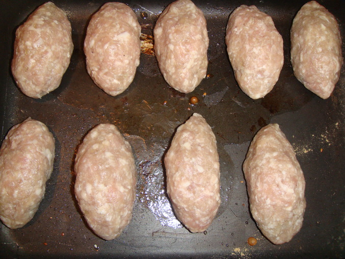Сформированные котлеты положить на противень, смазать сметаной или майонезом:
