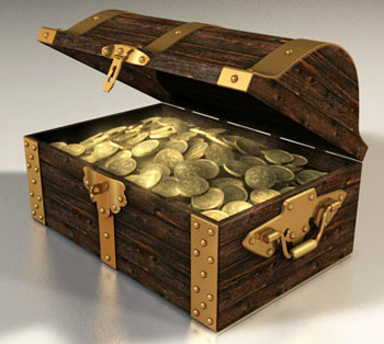 Вова очень покушался на родительский сундук с деньгами. Пришлось срочно подарить ему игрушечный и наполнить его монетками: