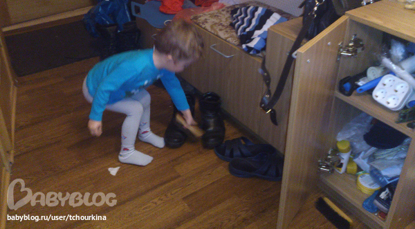 Повторюшка жуткая! Насмотрелся как мы чистим обувь и сам решил осуществить этот процесс: