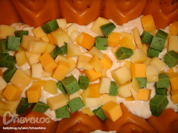 Прикрыть фольгой и тушить в духовке 15 минут. Затем посыпать натертым сыром, снять фольгу и дать сыру расплавится: