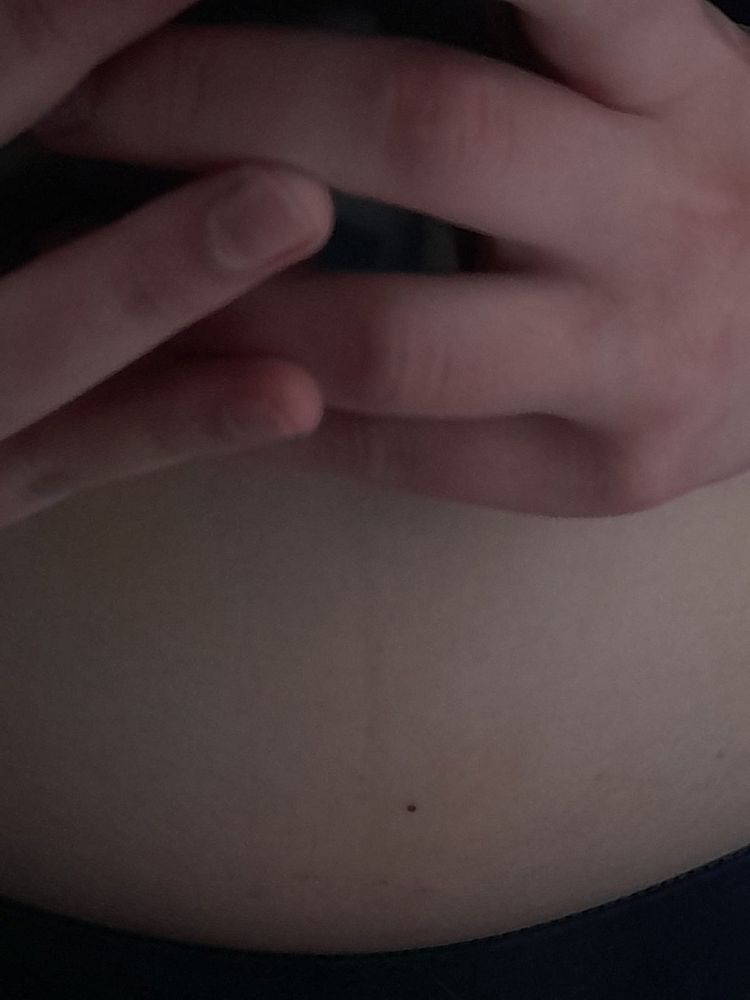 Появилась на животе коричневая полоска от пупка до лобка.Сегодня сделала тест леди чек,показал полоску,думаю реагент или нет,грудь побаливает.