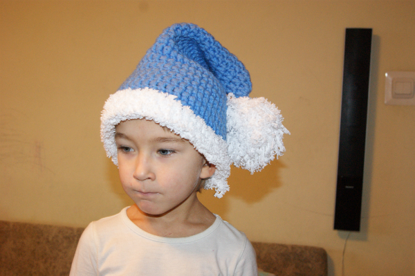 потом, если привыкает к ней и шапка ему нравится, то нормуль.. но несколько шапок у меня тоже лежит новых, потому что он наотрез отказался в них ходить)