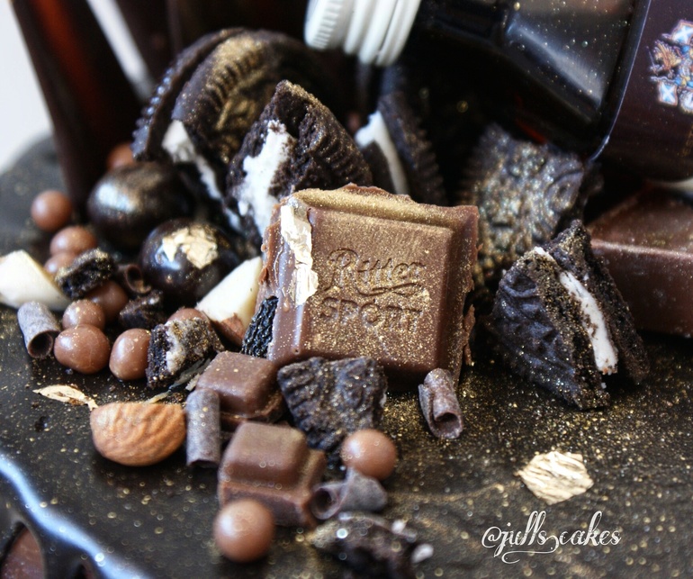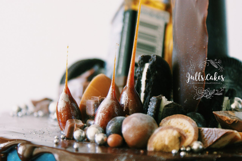 Мега-шоколадный торт: шоколадные ромовые коржи, крем на бельгийском шоколаде и сливках, алко-вишня, сливочная карамель, сверху выровнен шоколадным ганашем. В декоре шоколад, печенье и прочие вкусности и бутылочка виски настоящая👌
