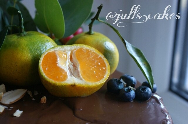 Внутри шоколадные коржи, сливочный крем, черничное и малиновое конфи.