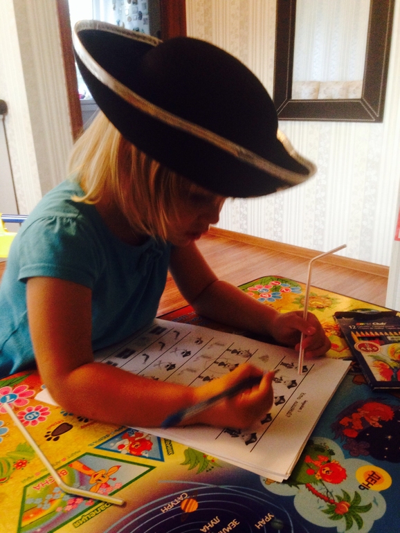Тут капитан Марипундель начала "халтурить" и больше плескатся водой , чем дуть. Капитан Джек Воробей "сказал" что он не доволен выполнением данного задания :) и предложил капитану Марипунделю выполнить еще одно дополнительно задание, чтоб получить последнюю часть карты. Тут Маша с усердием начала выполнять последние занятие.