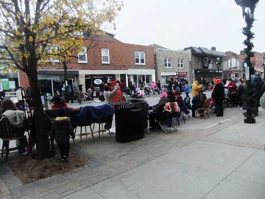 С утра на улице начинают собираться компании, семьи, с детьми и без детей, с родителями и без родителей, расстилают пледы, рассаживаются на складные стульчики, или прямо на дорогу, с неизменными кружками кофе, и ждут... кого бы вы думали? - Санту!