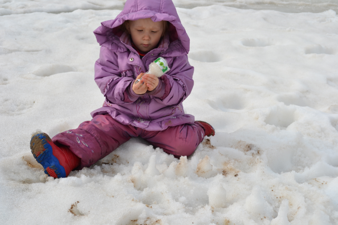 Лопаты и ведерки я взять забыла, поэтому и лопатой, и ведерком оказалась валяющаяся рядом бутылка от небезызвестного напитка. Печальное конечно зрелище весной, но зато есть ребенкам чем потешиться ))) Делает куличики