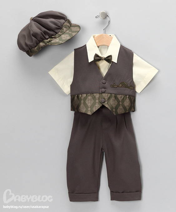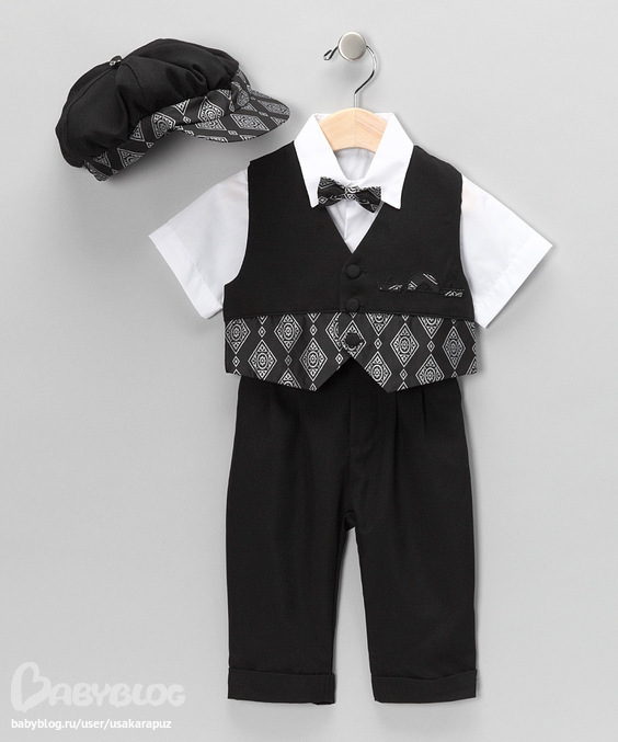 1.Комплект из пяти предметов рубашка+жилетка+брюки+берет+бабочка