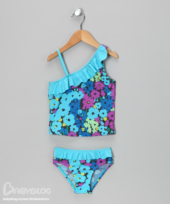 Яркий голубой+сиреневый купальник-танкини, размер 4-5 лет,стоимость 1050р, 850 рублей