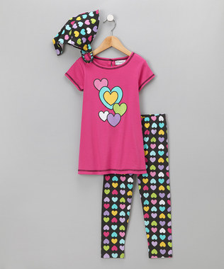 7. Комплект "Сердечки" из трех предметов, туника+леггинсы+косынка