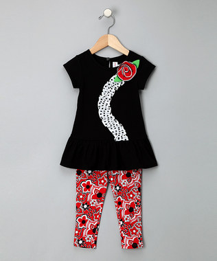 1. Комплект - туника с принтом и гипюровыми украшениями + леггинсы,