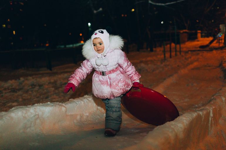 И вот возле дома у нас сделали классную горку, хорошо, что далеко ходить не надо, замерзли, и сразу домой)