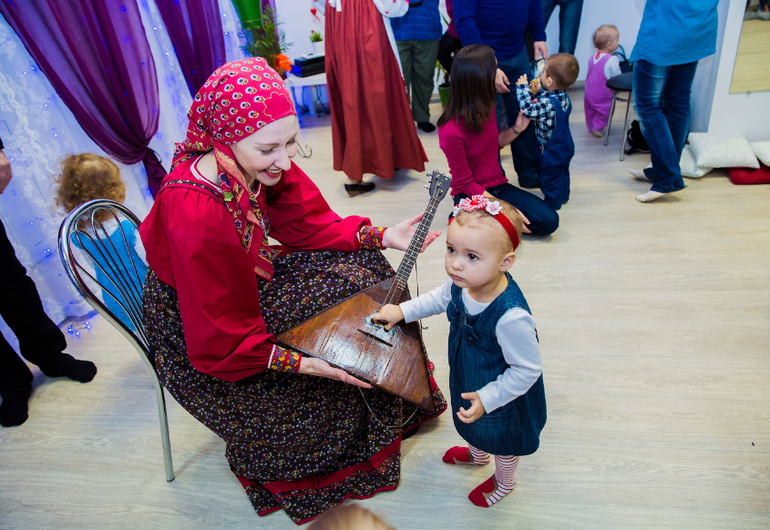 Масленницы.. Юля побывала на двух подряд. Платок ей взяла еще бабушкин, думала, вот образ такой будет, народный. Но я своего ребенка почти не видела все эти два часа, не потому что она носилась по залу, Я носилась и снимала других детей))