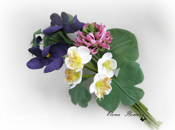 Я придумала лесной букетик.Цветы фиалки,земляники и клевера.