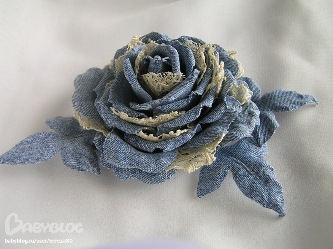 Делалось украшение на заказ из джинсовой ткани с добавлением кружева.Можно брошью носить,а можно и на ободке.