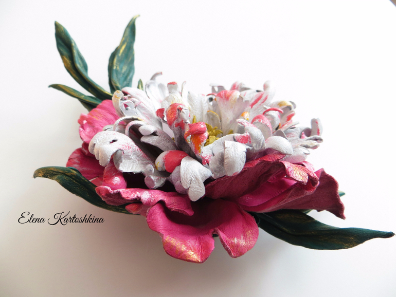 Пион из кожи. Брошь.
