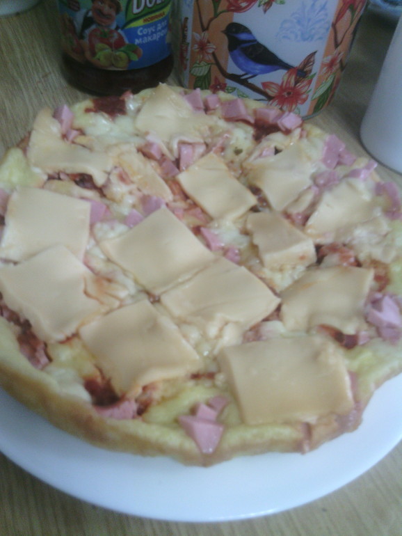 Смазать протвинь или дно мультиварки немного раст.маслом. вылить тесто, сверху всё, что любите: тертая колбаска, помидоры, кетчуп, и пр. А поверх уже посыпать тертым сыром или как я сейчас делаю- режу пусковой плавленный сыр на ломтикт и сверху их укладываю на пиццу. В духовке - 20 минут, в мультиварке 40 на режиме Выпечка. Вкуснота нереальная! А главное не надо за тестом бежать в магазин, раскатывать его и т.д.