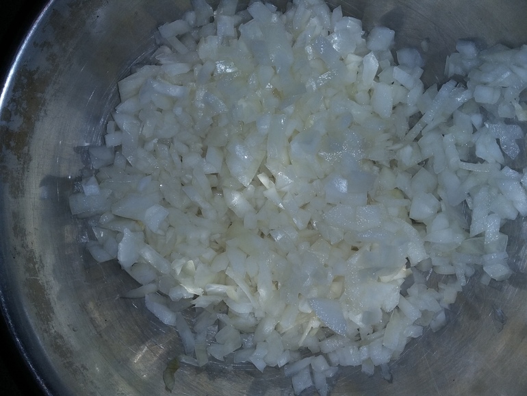 Мелко порубить лук: