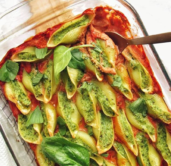 Фаршированные ракушки с начинкой из шпината и цветной капусты
