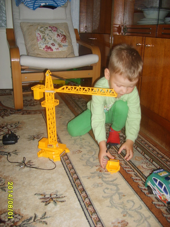 с утра ждали его подарки, заказанный им башенный кран и лего.