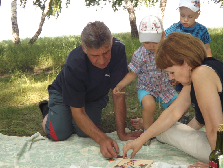 здесь Матвей помогает бабе с дедом собирать пазлы
