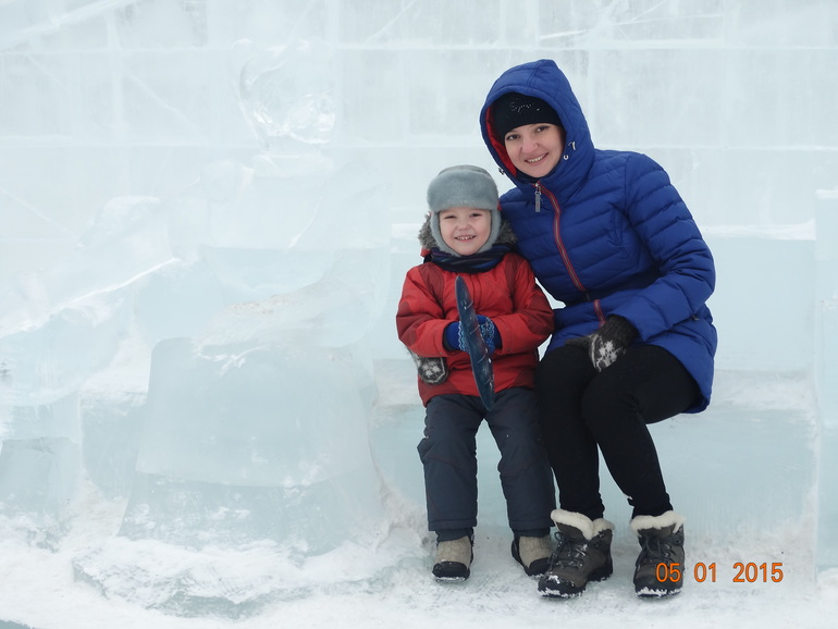 народу в этом году было больше, чем в прошлом, поэтому мама не накаталась, т.к. в очереди на большую горку простояли мин. 15. Но Матюшка накатался вдоволь на маленьких горках!
