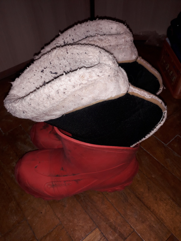 Сапоги для дачи, отличны для грязи. Испачканы в краске (не отмываются). Сапожок внутренний очень тёплый.