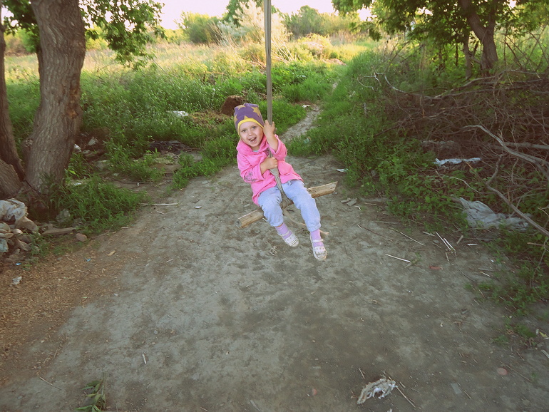 Впервые Варя ощутила ветер в лицо на тарзанке ))