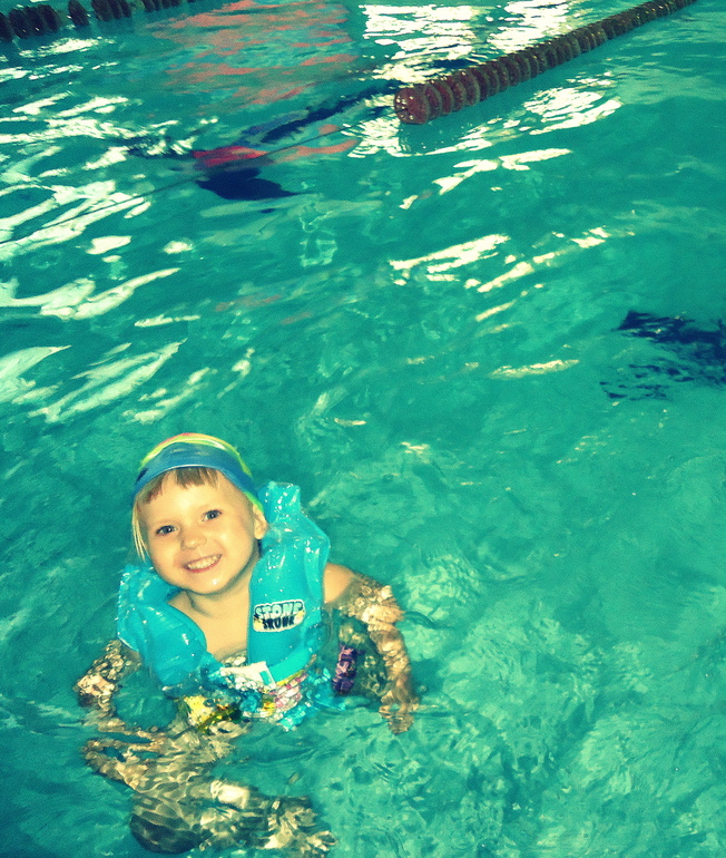 Наконец-то зафоткала Варьку в бассейне )