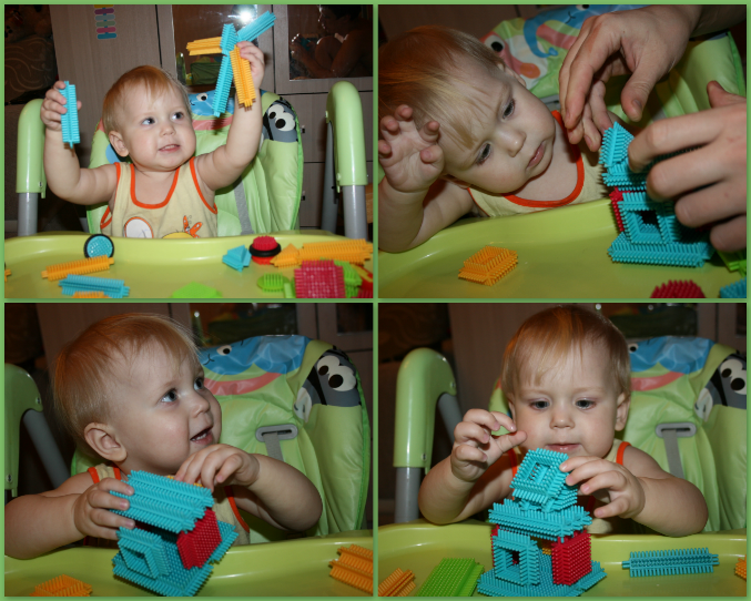 На самом деле я поняла, что у Вари ооочень мало интересных игрушек, к примеру у неё нет даже деревянных пазлов. Будут следующие на очереди ) И конструктор типа Лего, уж больно он ей нравится - и во дворе у мальчишек берёт, и сегодня с Савочкой (это её дядя двоюродный 5 лет) с удовольствием играла ))