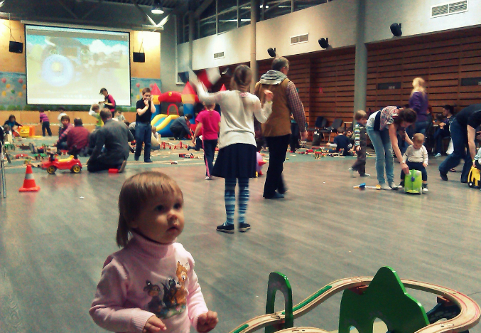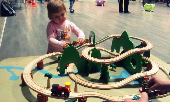 Вот и мы побывали там наконец-то)) Вообще планировала туда съездить, чтобы понять нужен ли нам самокат..?))) понравится ли ей на нём кататься...Но самокатов там не было( только чемоданчики...Паравозики её особо не привлекли пока..зато надувной бабут понравился) в общей сложности пробыли там часик..потом ей надоело и мы пошли гулять по самому огогороду...Для себя решила, что больше туда не поедем..) Не понравилось, что большинство родителей сидят по углам и занимаются своими делами..за детками особо не смотрят...видели деток, которые бегали в мокрых штанах(( т.е. писали прям на ковёр! а одного мальчика вообще папа оставил и ушёл...не известно куда...мальчишка бегал мокрый, потом колготки снял и бегал босиком в одних трусиках( родители пришли за ним только к шести часам, когда всё закончилось..