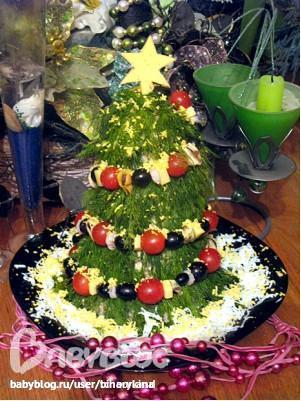 зубочистку сверху. Белком делаем снег и втыкаем звезду из сыра в
