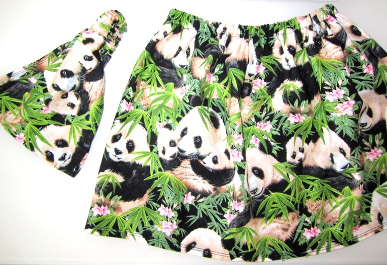 23) Косыночка и юбка "Панды" - милые панды в зарослях бамбука. Цена комплекта - 1500 руб. (можно отдельно косынка - 500 руб., цена юбки - 1200 руб.).