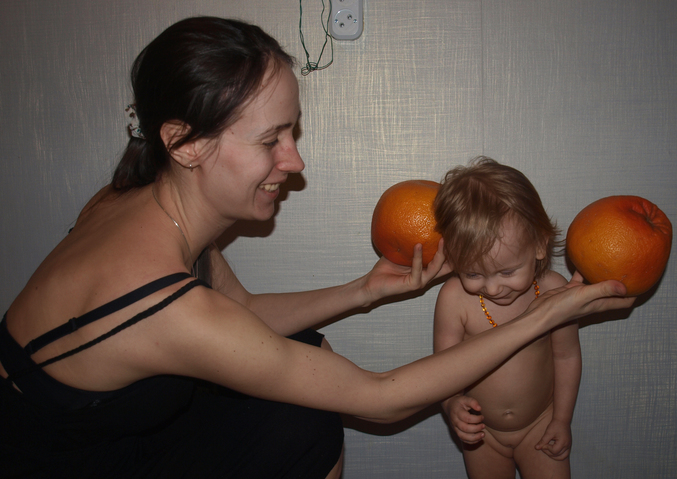 Ещё Михина мама передала нам два грейпфрута. Не знаю почему, но я над ними смеялась))